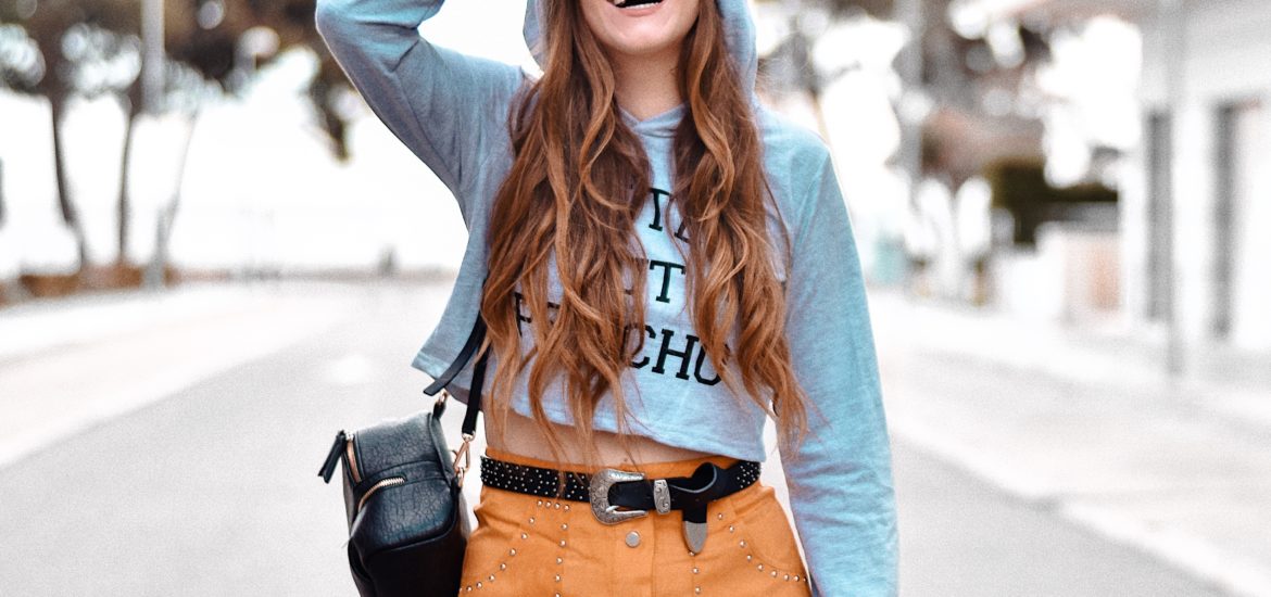 Hoy os traigo un look de los que a mi me gustan: informal pero muy mono a la vez. En un principio tenía pensado combinar la falda con un jersey o top más arreglado, pero al final me gustó mucho el rollo desenfadado y casual que le dio la sudadera. Ya sabéis que me encanta combinar prendas así. El toque de las tachuelas y los botoncitos de la falda crea un contraste muy guay con el toque más sport de la sudadera “cropped”. Combiné ambas prendas con una mochilita negra, cinturón negro con hebilla y tachuelas también y los botines negros de perlitas que ya sabéis que han sido mis inseparables estos últimos meses.