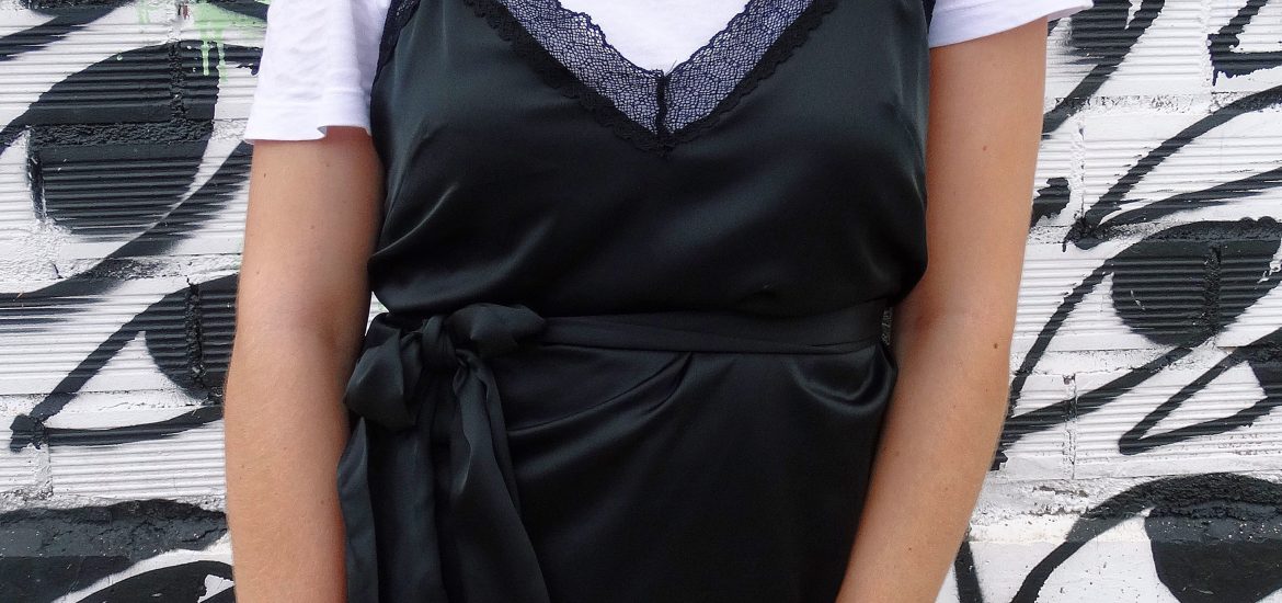 Hoy os traigo una nueva tendencia que me encanta y que ya causó furor en los 90. Ya sabéis, ¡todo vuelve!. Os hablo de la combinación de VESTIDO LENCERO SOBRE CAMISETA BÁSICA. La tendencia de la camiseta básica, sobre todo blanca, debajo de monos o vestidos, largos o cortos, ha llegado con fuerza y creo que la seguiremos viendo este próximo invierno, pues ya puede verse que se apuesta mucho por ella en diferentes marcas, blogs y revistas de moda. Y si juntamos ese toque básico, con el punto íntimo y personal que tiene un vestido lencero, conseguimos una combinación perfecta y con alto nivel de impacto.